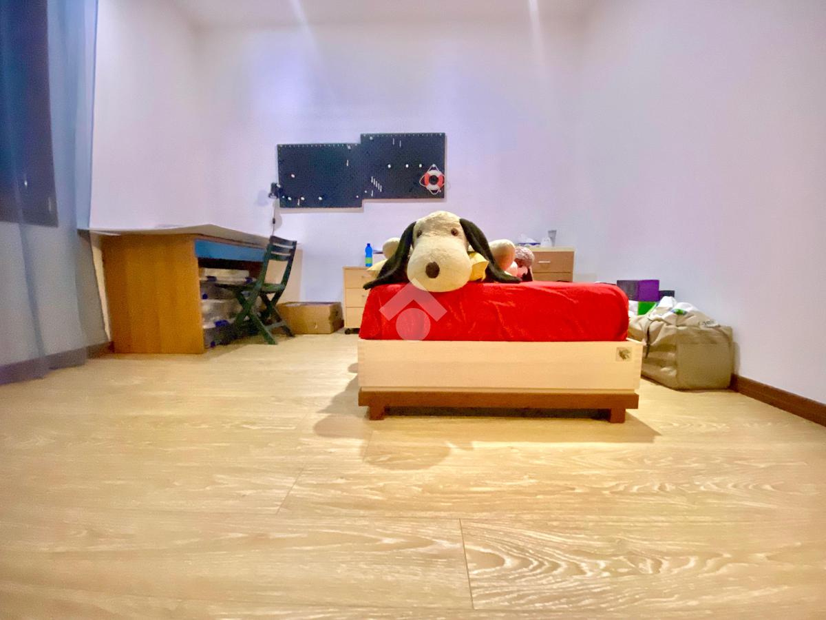 Da qui si accede direttamente al giardino privato di circa 220 mq, uno spazio verde riservato e curato, arricchito da un portico ideale per pranzi all’aperto e momenti di relax in compagnia.